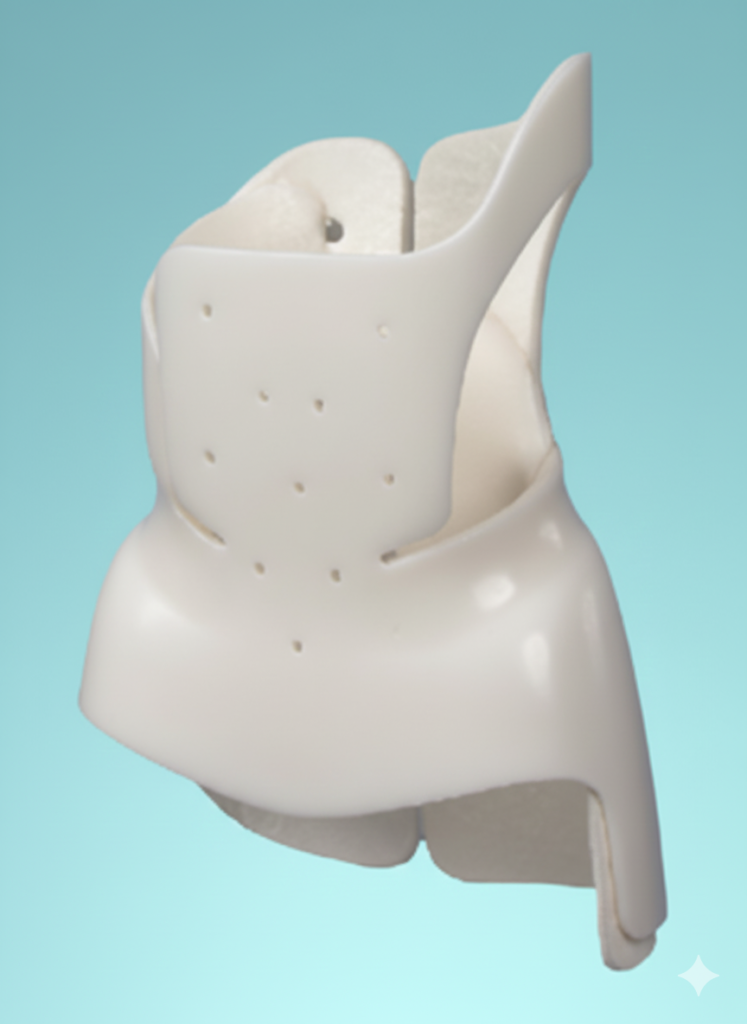 Constructed from lightweight polypropylene with strategically placed foam padding to maximize patient compliance while maintaining corrective effectiveness.